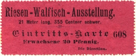 Eintrittskarte zur "Riesen-Walfisch-Ausstellung"