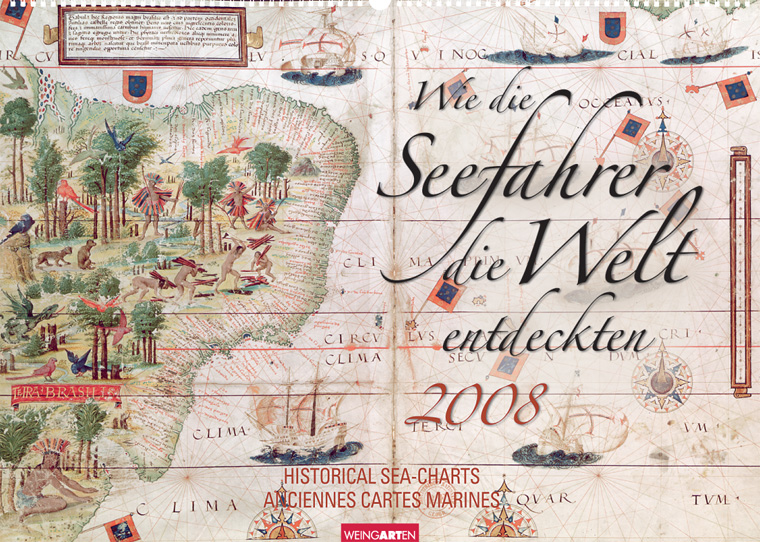 12 historische Seekarten, die zwischen dem 14. und 17. Jahrhundert von namhaften Stechern angefertigt wurden, sind auf einem außergewöhnlichen Kalender des Weingarten-Verlages für das Jahr 2008 zu sehen. Wie die Seefahrer die Welt entdeckten 2008 Diese einzigartigen Reproduktionen im Format von 68 cm x 48,5 cm sind nicht nur ein Genuss für das Auge, sie lassen sich auch nach Gebrauch (mit einem Rahmen und Passepartout versehen) als schöne Wanddekoration verwenden. Obwohl es den alten Seefahrern um Schätze in unbekannten Gefilden ging, haben sie doch für ihre Nachwelt Aufzeichnungen hinterlassen, die von Kartografen in wunderschöne Kupferstiche und Lithografien umgesetzt wurden.